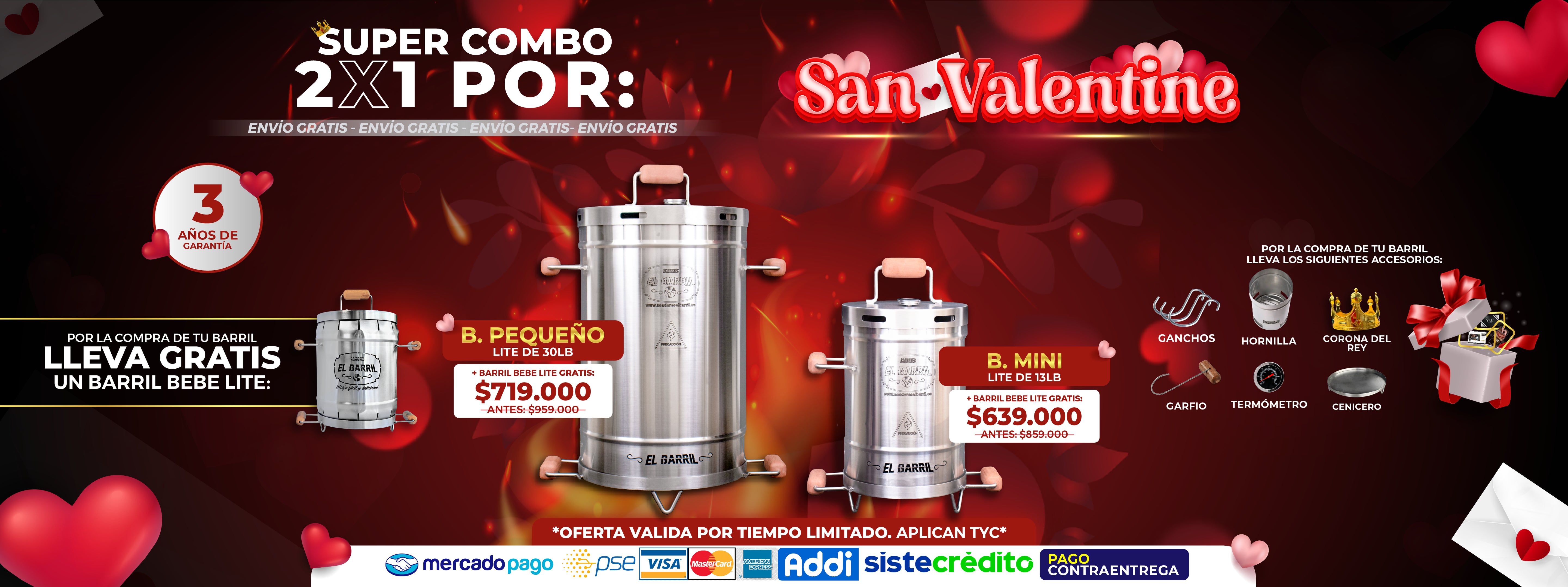 Barril San Valentin Edicion Limitada 3lb + Accesorios + Envío Gratis