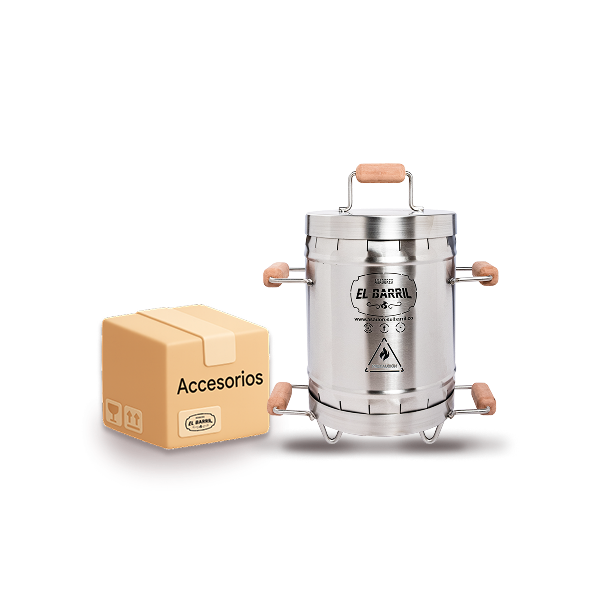 Cada barril incluye todo lo necesario para empezar tu primer asado. Los accesorios adicionales dependen de la promoción vigente.