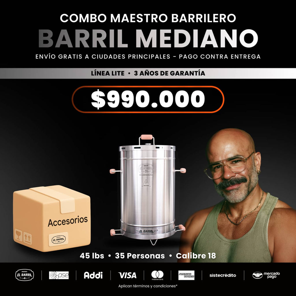 ¡Compra ahora el Asador Combo Maestro Barrilero Mediano y lleva tus parrilladas a un nivel profesional!