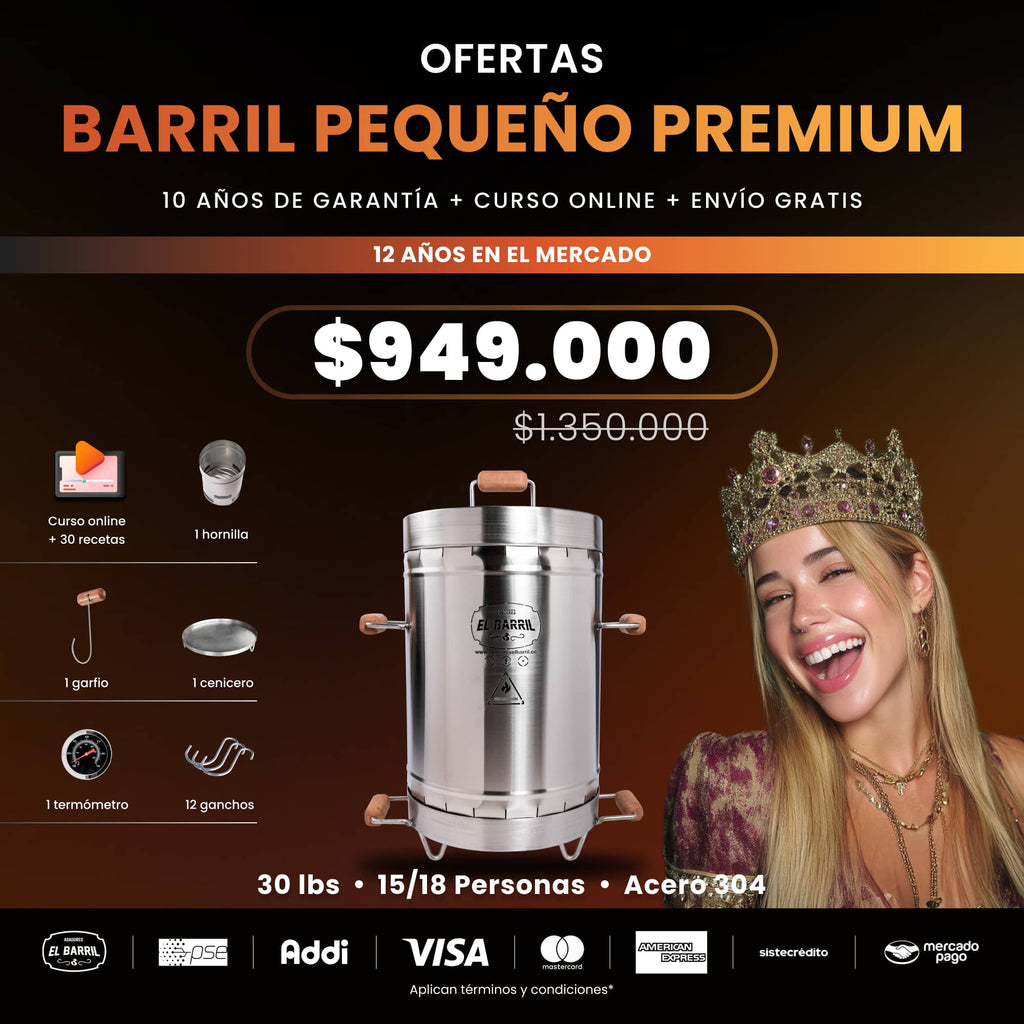 - Capacidad Ideal: Con espacio para cocinar entre 15 y 20 libras de carne, este barril pequeño es perfecto para servir deliciosos platillos a grupos medianos, sin ocupar mucho espacio en tu área de asado.